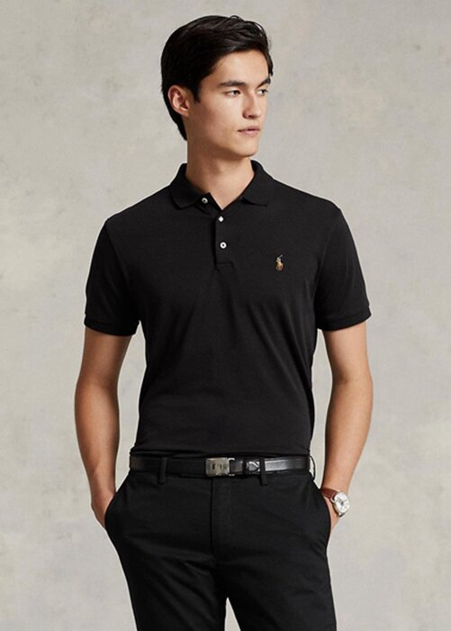 Black Men’s Ralph Lauren Custom Slim Fit Soft Cotton Polo Shirts