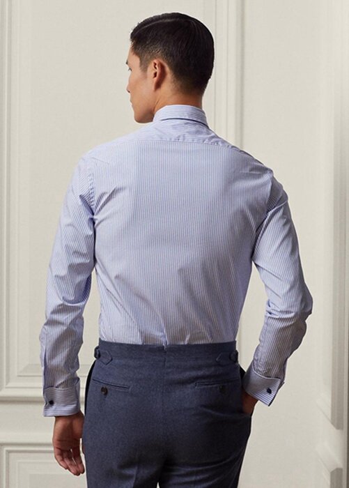 Blue Men’s Ralph Lauren Bengal-stripe Poplin French Cuff Formal Shirts
