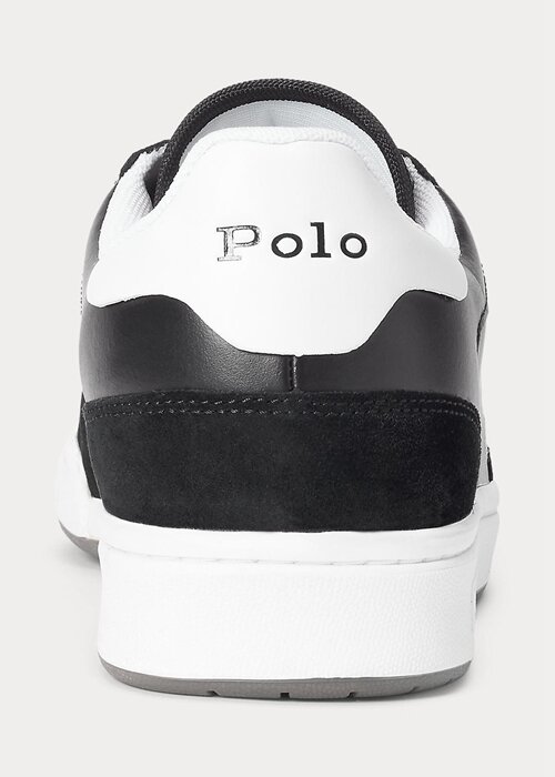 Black / White Men’s Ralph Lauren Court Leather-Suede Sneakers