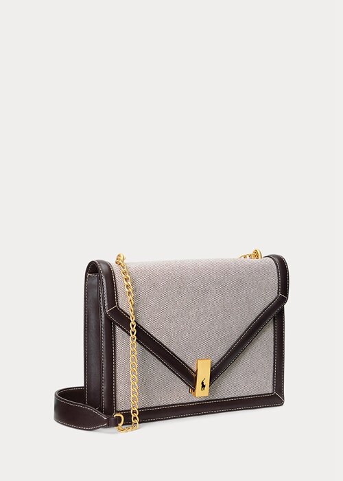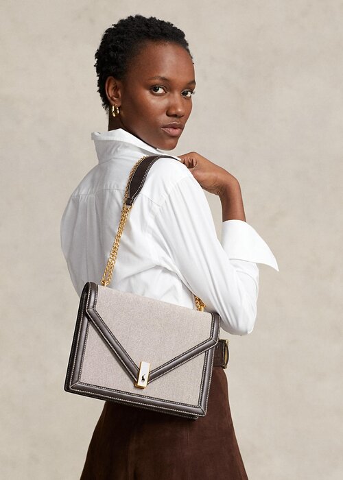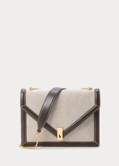 Natural/Tobacco Women’s Ralph Lauren Polo ID Canvas Envelope Chain Crossbody Bags