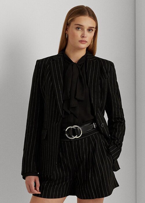 Black Women’s Ralph Lauren Pinstripe Linen-blend Twill Blazers