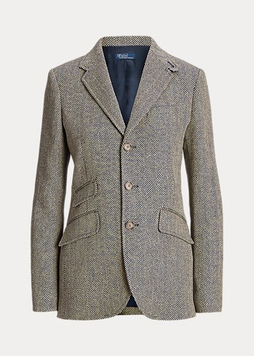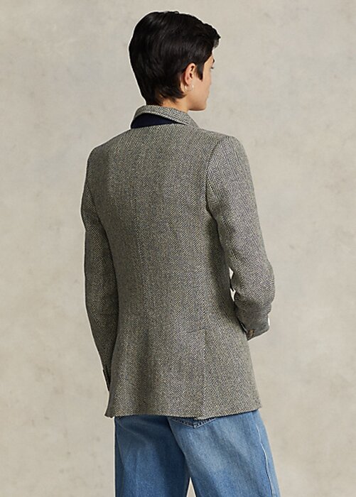 Navy / Cream Women’s Ralph Lauren Linen-Blend Herringbone Hacking Blazers