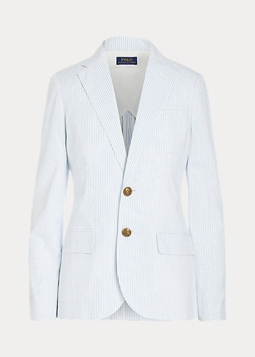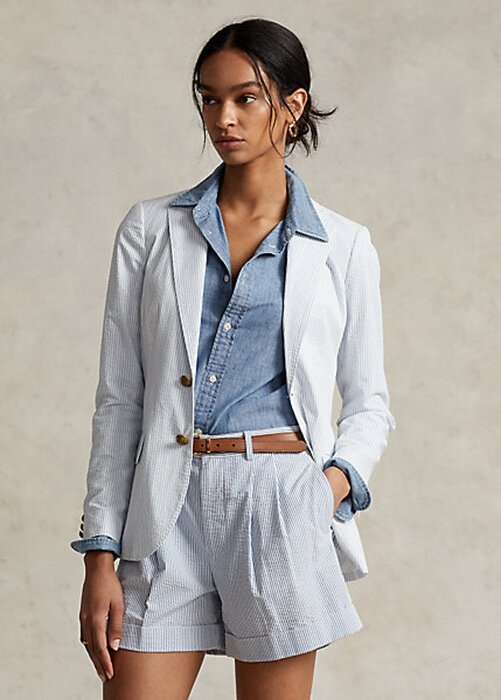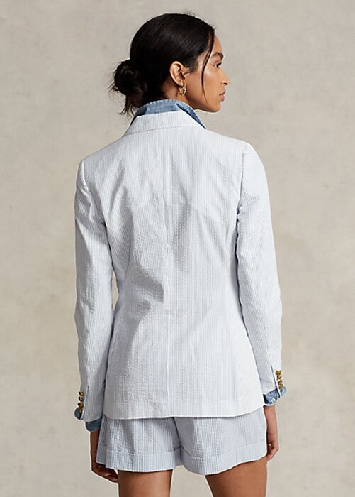 Ideal for warm weather, this slim-fitting blazer is crafted from breezy cotton seersucker and partially lined.
