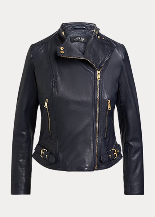 Navy Women’s Ralph Lauren Tumbled Leather Moto Jackets