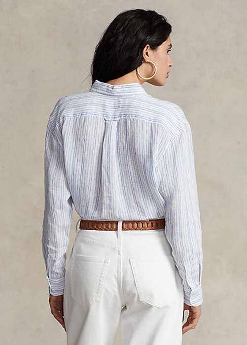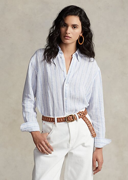 Blue Women’s Ralph Lauren Relaxed Fit Striped Linen Shirts