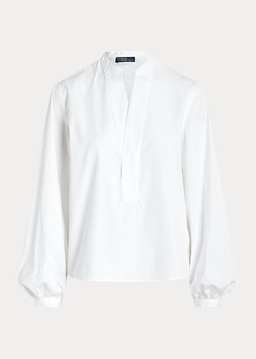 White Women’s Ralph Lauren Boxy Fit Cotton Blouson-Sleeve Shirts