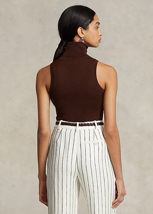 Brown Women’s Ralph Lauren Wool Sleeveless Turtleneck Sweaters