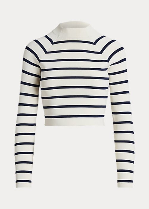 Cream / Navy Women’s Ralph Lauren Striped Cropped Mockneck Sweaters