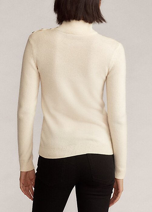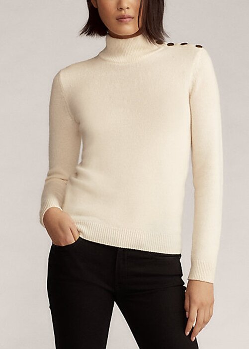 Cream Women’s Ralph Lauren Buttoned Cashmere Turtleneck Sweaters