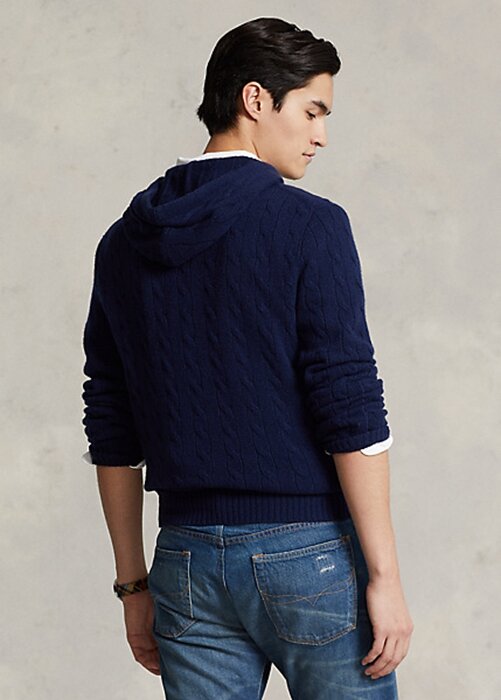 Navy Women’s Ralph Lauren Pink Pony Cable Cashmere Hooded Sweaters