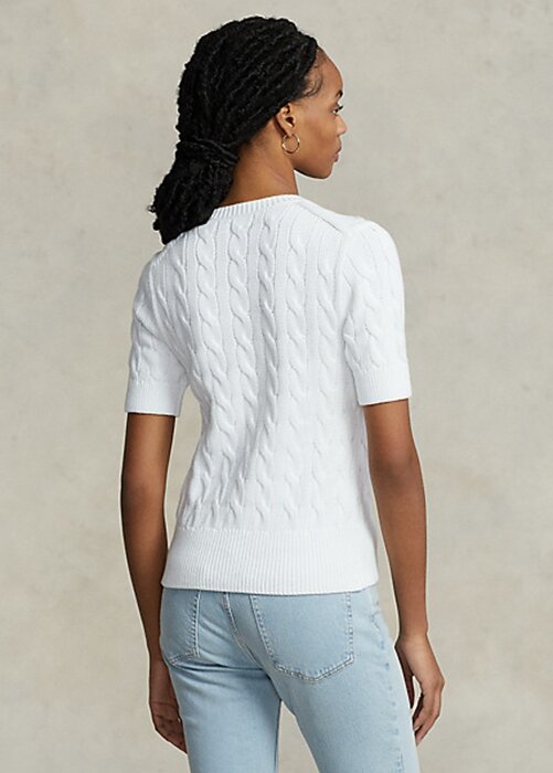 White Women’s Ralph Lauren Cable-Knit Short-Sleeve Sweaters