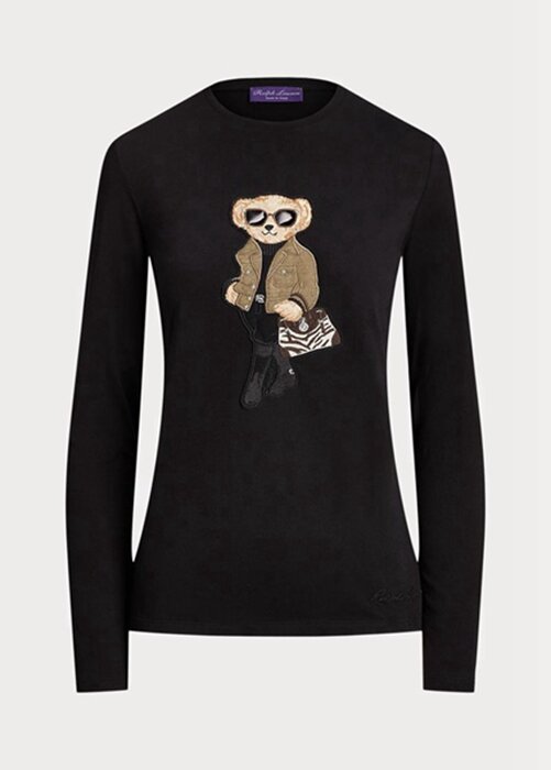 Black Women’s Ralph Lauren Utility Bear Cotton Long-sleeve T Shirts