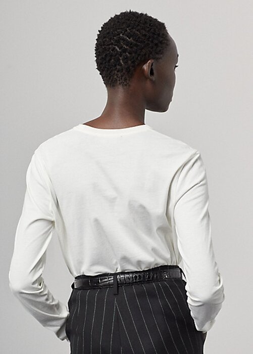 White Women’s Ralph Lauren Cinema Polo Bear Cotton Long-Sleeve T Shirts