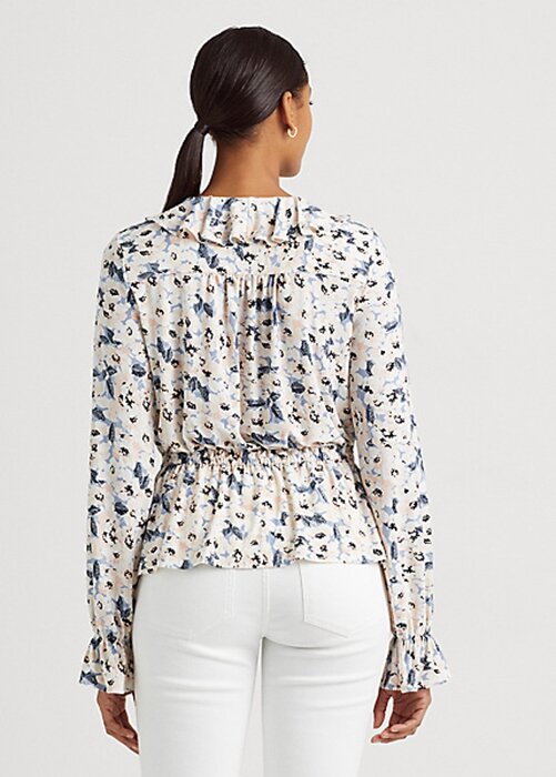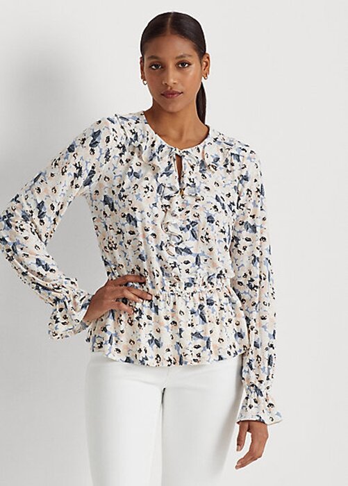 Multicolor Women’s Ralph Lauren Floral Jersey Tie-Neck Peplum Tops