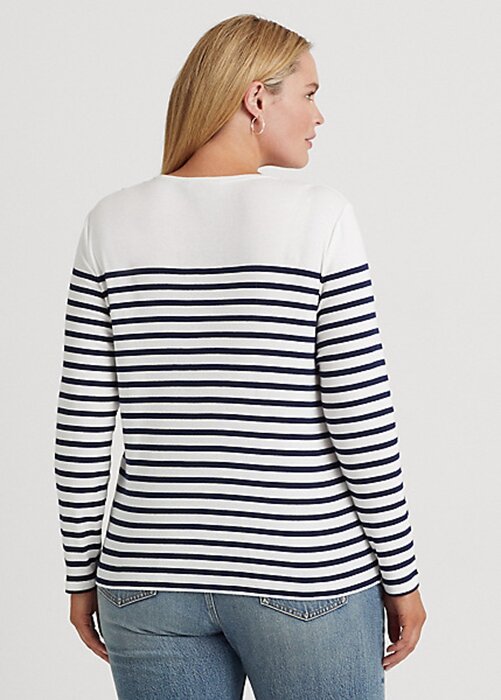 White / Navy Women’s Ralph Lauren Striped Cotton Long-Sleeve Tops