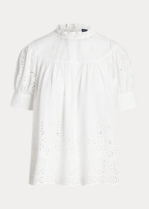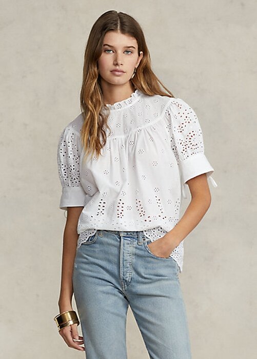 White Women’s Ralph Lauren Eyelet-Embroidered Cotton Tops