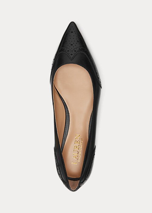 Black Women’s Ralph Lauren Loraine Burnished Leather Ballet Flat Shoes