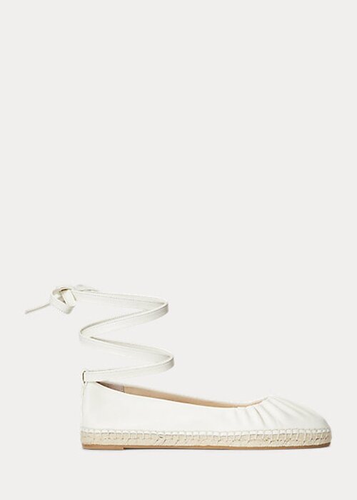Cream Women’s Ralph Lauren Cecilia Nappa Leather Lace-Up Flat Shoes