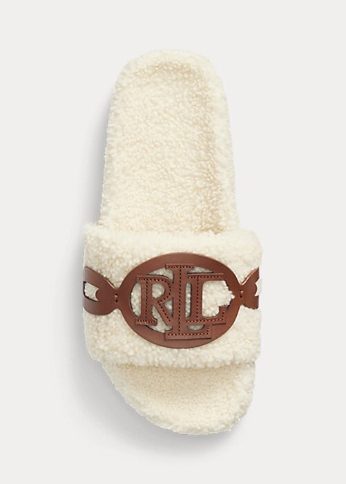 Cream Women’s Ralph Lauren Dixie Leather-Trim Shearling Flat Shoes